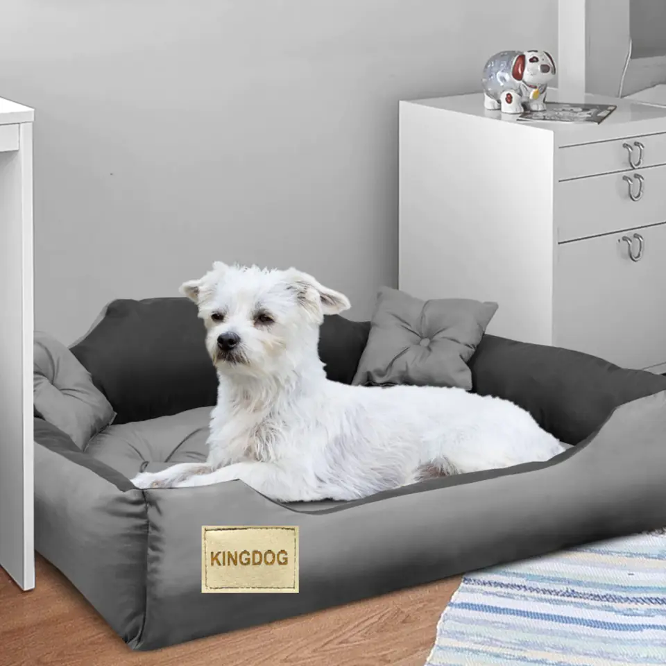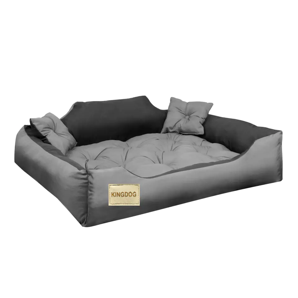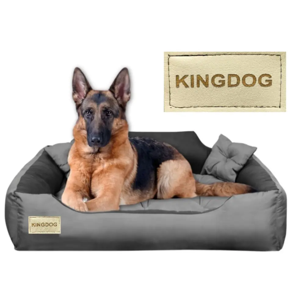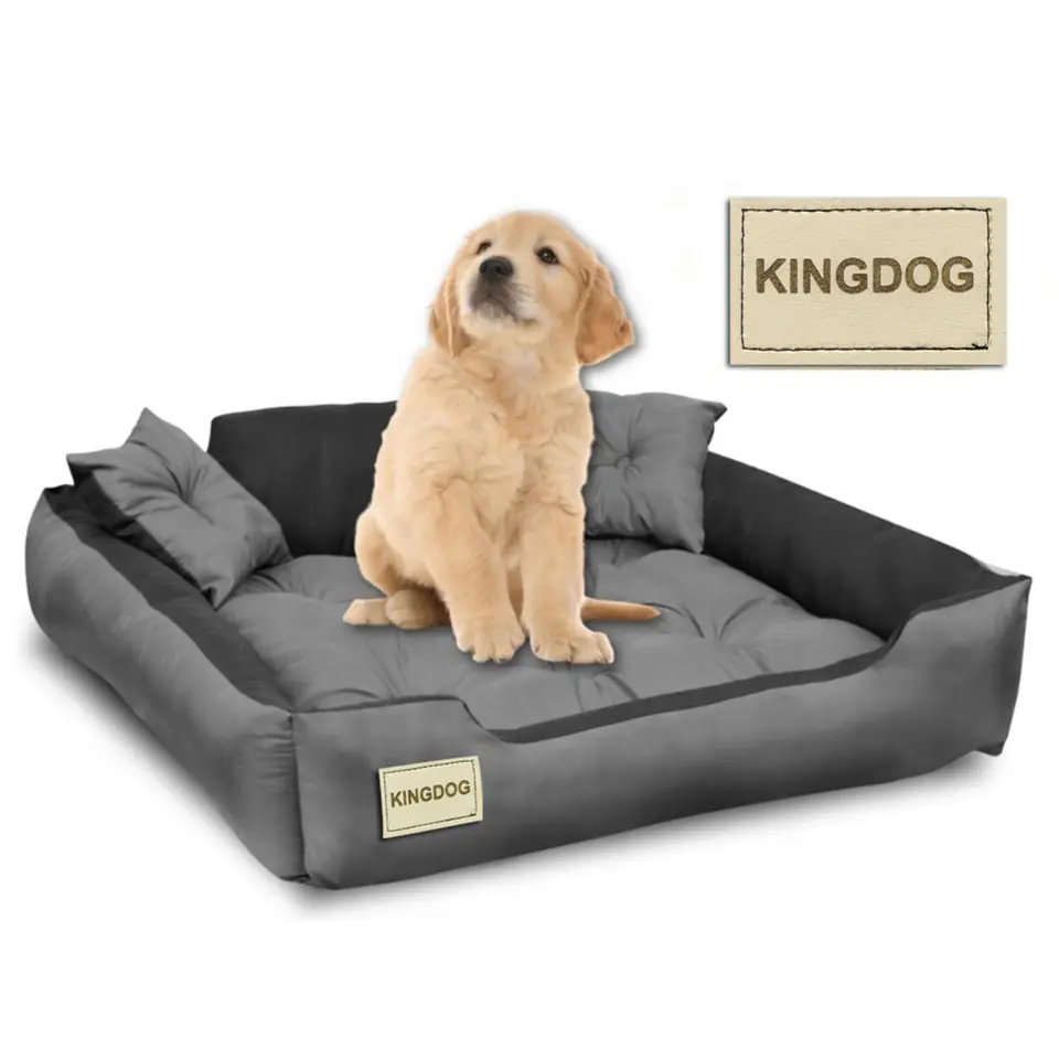 Legowisko KingDog - doskonałe dla Twojego psa lub kota. Rozmiar: "XL" 115x95 cm. Tkanina łatwa w czyszczeniu i odporna na zabrudzenia. W zestawie dwie poduszki. Pikowane poduszki sprawią, że Twój najlepszy przyjaciel będzie spać jak prawdziwy król. Na frontowej części legowiska znajduje się naszywka z nazwą producenta. Spód legowiska wykonany jest z materiału łatwego w czyszczeniu.