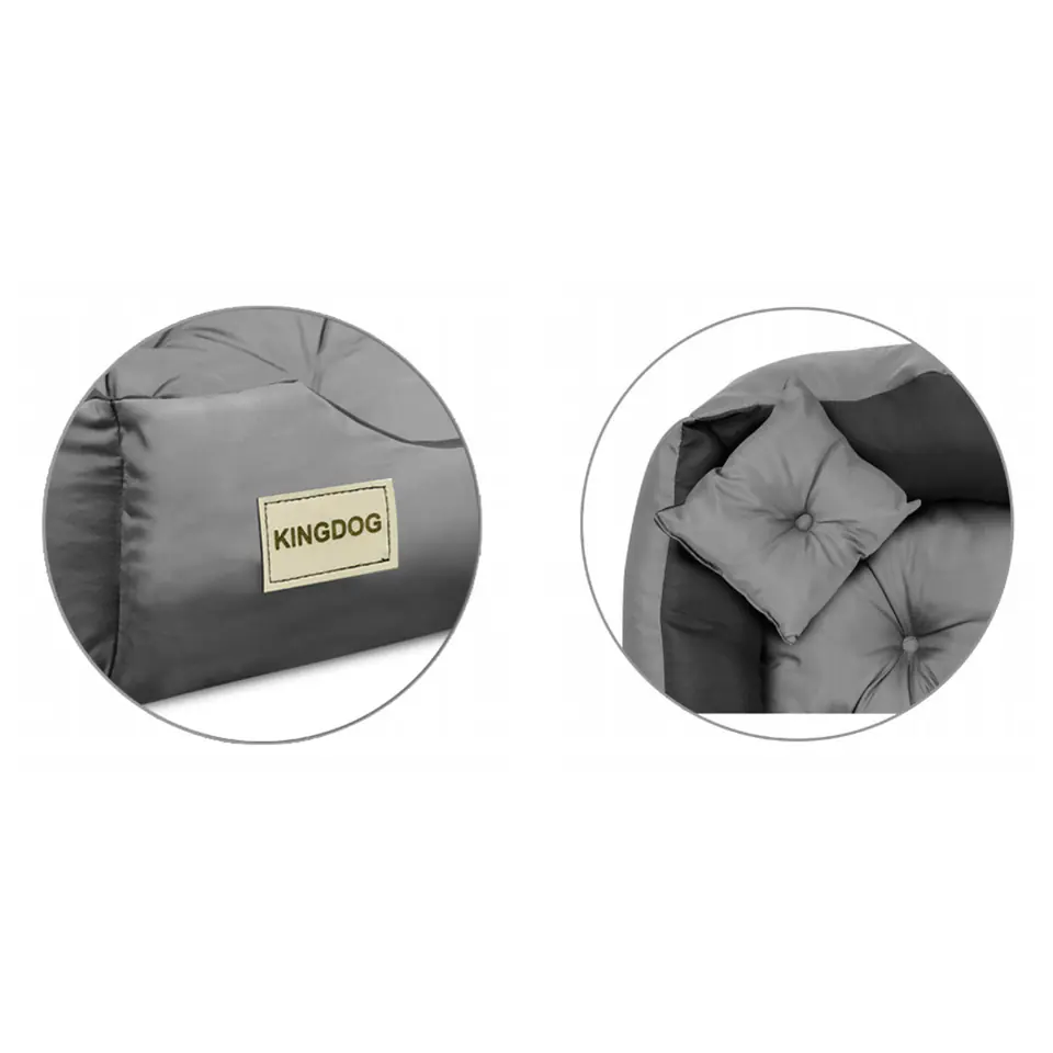 Zestaw zawiera- Legowisko dla psa kota Kingdog 115x95 cm z mikrofibry - kolor szaro-czarny- Poduszki 2szt. 15x15 cm