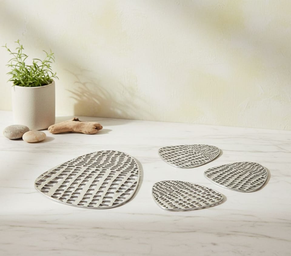 LEILA Komplet 4 podstawek pod kubek 10x13cm srebrne