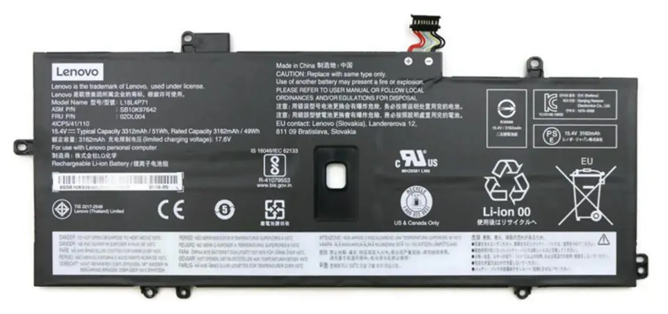 Lenovo 51Wh Lithium-ion battery for Lenovo ThinkPad X1 02DL005, Battery, Lenovo