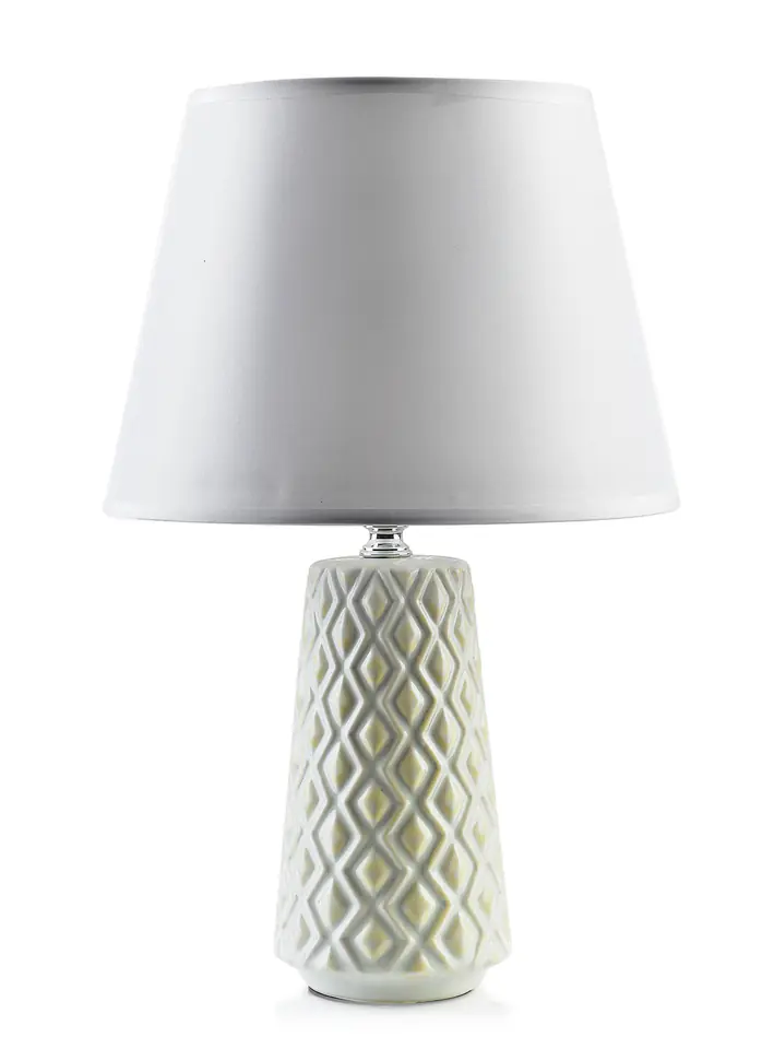 Lampa z serii LETI BEIGE marki MONDEX składa się ceramicznej podstawy i klosza z materiału. Tłoczona podstawa w kolorze beżowym sprawia, że nada ona niezwykłego klimatu wnętrzu. Tłoczenie dodaje niezwykły efekt wielowymiarowości lampy. Wpołączeniu z białym kloszem idealnie wpasowuje się w obecne trendy. Wymiary: 9,5x6,5xh32,5cm z kloszem Podstawa:9,5x6,5xh24,5cm z gwintem Klosz: 14x19,5xh15cm Żarówka, gwint: E14 max 60W Długość kabla: 120cm waga:682g/720g opakowaniem Podstawa lampy zapakowana w brown box: 10x9,5xh24,5cm, klosz osobno Lampa stołowa ceramiczna to jeden z najpopularniejszych rodzajów lamp, wykorzystywanych w wielu domach i biurach na całym świecie. Swoją popularność zawdzięcza zarówno praktyczności, jak i estetyce. W dzisiejszych czasach dostępnych jest wiele różnych modeli i wzorów, dzięki czemu każdy może znaleźć coś odpowiedniego do swojego wnętrza. Lampy stołowe ceramiczne mają długą historię, sięgającą aż do starożytnych Chin. W tamtych czasach wykorzystywano je głównie jako źródło światła w świątyniach i pałacach cesarskich. Jednak dopiero w XIX wieku, dzięki rozwojowi przemysłu ceramicznego, stały się popularne w Europie. Wówczas zaczęto wykorzystywać je również do oświetlenia domów i biur.
