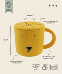 Ten sprytny silikonowy kubek z wesołym zwierzakiem zaprojektowany został z myślą o maluchach uwielbiających smakowite przekąski. Elastyczna pokrywka zabezpiecza przekąski przed wypadaniem i ma idealne proporcje dla małych rączek, a zaokrąglone ucho jest wygodne do uchwycenia. Kubek wykonany jest z wytrzymałego, 100% silikonu spożywczego, który jest miękki w dotyku, nie pęka po upuszczeniu i nadaje się do użytku w kuchence mikrofalowej, piekarniku, zamrażarce i zmywarce.Cechy: - wyjątkowy design- elastyczna pokrywka- idealne proporcje dla małych rączek- miękki w dotyku- odporny na upadki i pękanie- podgrzewanie w mikrofalówce i piekarniku- mycie w zmywarce- łatwy w czyszczeniu Materiał:100% silikon spożywczy Zalecany wiek:4 miesiące+Wymiary:11 x 8 x 8 cm...