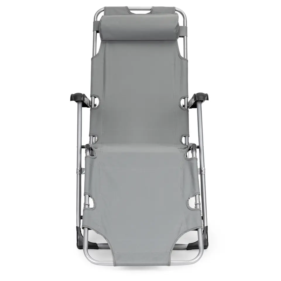 Leżak posiada 3-stopniową regulację podnóżka, dzięki czemu idealnie dopasujesz go do własnych potrzeb.