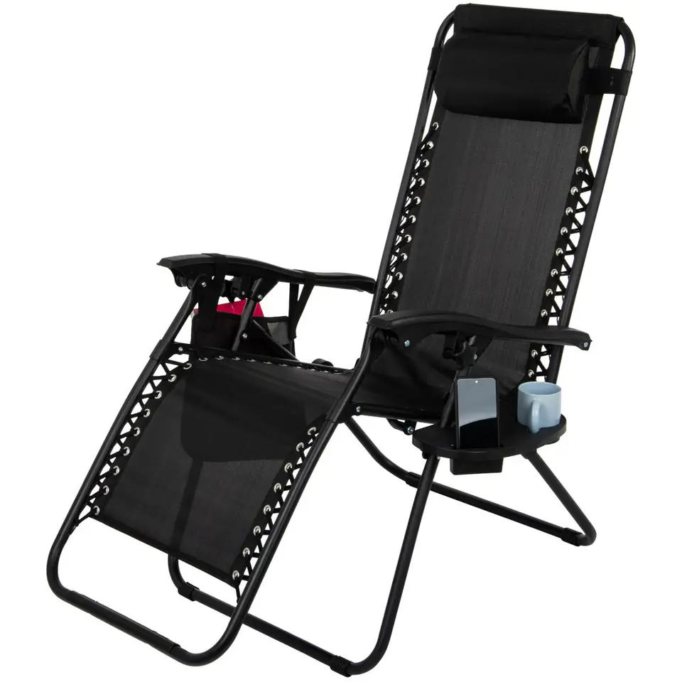 - możliwość wyboru dowolnego kąta nachylenia oparcia z bezpieczną blokadą pozycji zagwarantuje odpoczynek i relaks na najwyższym poziomiepozycja ZERO GRAVITY pozwoli na zniwelowanie nacisku na kręgosłup, ułatwi krążenie wszelkich płynów ustrojowych, zapobiegnie opuchliźnie stópwygodne, miękkie i przewiewne siedzisko zapewni komfort użytkowania nawet przez kilka godzinregulowany, zdejmowany miękki zagłówek pozwoli oprzeć wygodnie głowę na oparciuspecjalna kieszeń i stoliczek na kubek oraz telefon pozwolą na zorganizowanie sobie przestrzeni tak, by często nie wstawać z fotelaplastikowe nakładki na metalowe nogi leżaka zapobiegną ślizganiu sięwyjątkowo stabilna i wytrzymała metalowa konstrukcja oraz eleganckie siedzisko wykonane z bardzo trwałego materiału Textilene 2x1 sprawdzą się przez wiele sezonów