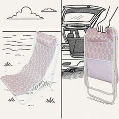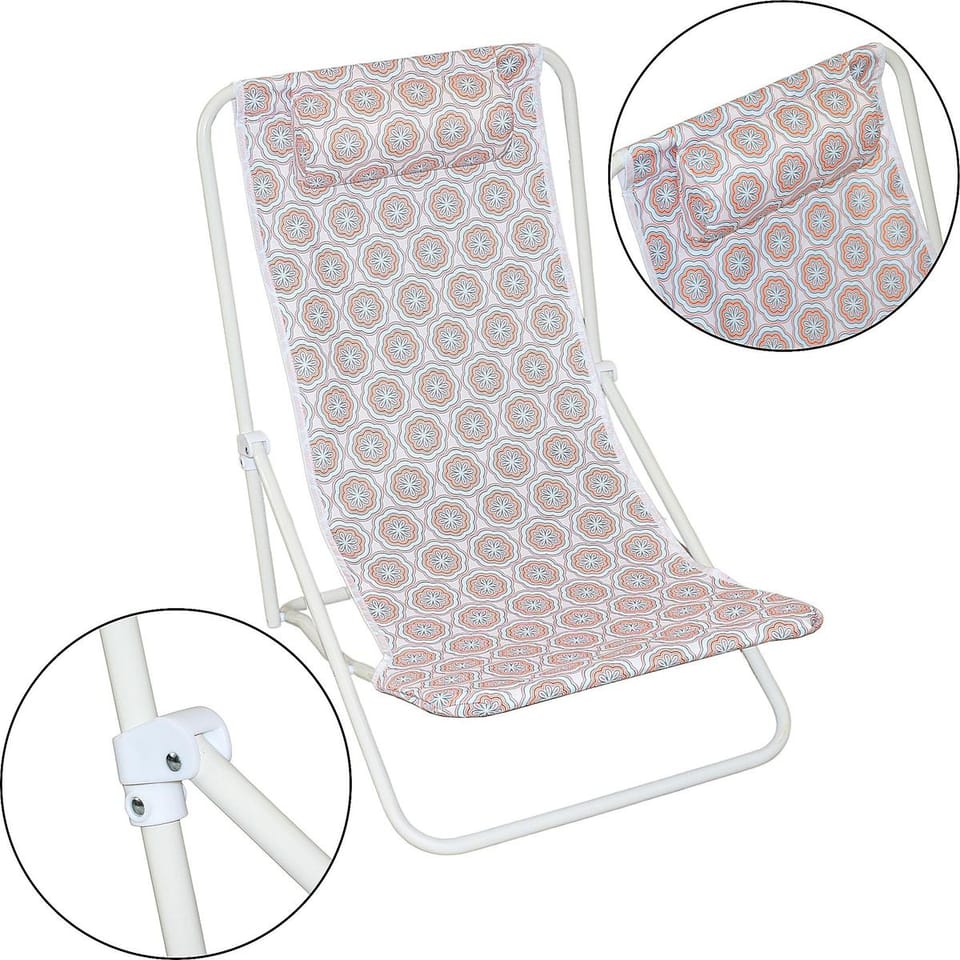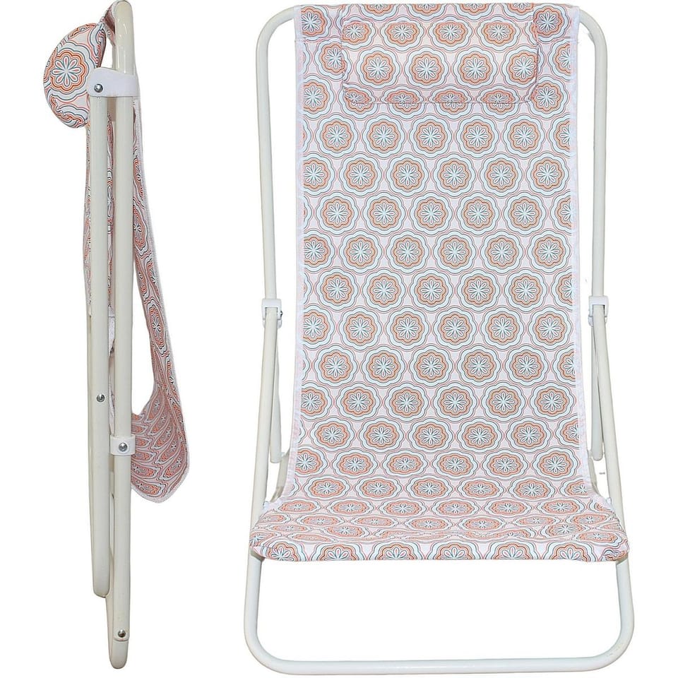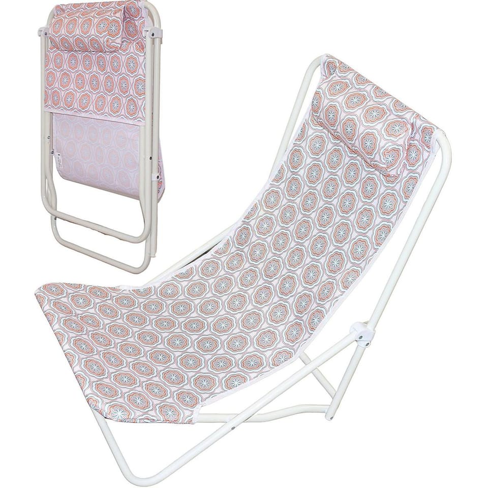 - lekka konstrukcja pozwoli na leżakowanie w dowolnym miejscumateriał siedziska to wodoodporny poliester 600Didealny do leżakowania na plaży, nad jeziorem w ogrodzie, na tarasie lub na balkoniemiękki zagłówek na oparciu zapewni wygodne podparcie dla głowyłatwy w utrzymaniu czystości