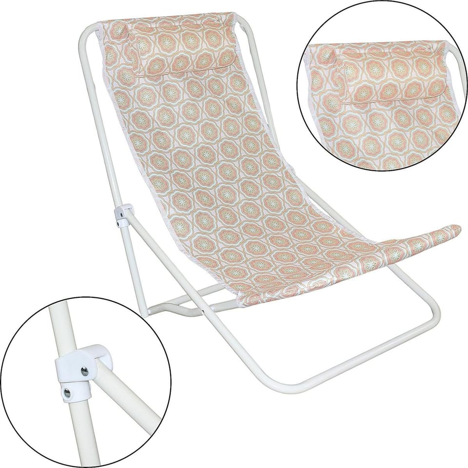 - lekka konstrukcja pozwoli na leżakowanie w dowolnym miejscumateriał siedziska to wodoodporny poliester 600Didealny do leżakowania na plaży, nad jeziorem w ogrodzie, na tarasie lub na balkoniemiękki zagłówek na oparciu zapewni wygodne podparcie dla głowyłatwy w utrzymaniu czystości