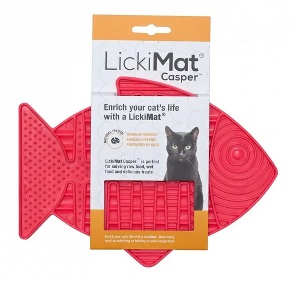 LickiMat ClassicLickiMat Classic Casper to pierwsza mata dedykowana dla kotów w cudownym kształcie rybki. Jest płaska, więc nie drażni wibrysów oraz pozwala spożywać pokarm w pozycji kucającej z pełnym widokiem na otoczenie, co pomaga zmniejszyć stres i niepokój podczas jedzenia. Sprawdzi się świetnie również dla mniejszych psów!Pogromcy nudy - maty LickiMat zostały zaprojektowane, aby poprawić samopoczucie Twojego zwierzaka, a także poprawić jego zdrowie. LickiMat zostały nazwane smacznymi "zabójcami" nudy dla twojego psa lub kota. Rozsmarowując ulubiony miękki przysmak swojego zwierzaka na powierzchni maty, tworzysz smaczną i zabawną grę, w której pupil szuka smakołyka każdym milimetrem języka. Zamrażaj smakołyki w lecie, aby stworzyć dłuższą odświeżającą rozrywkę. Maty są polecane przez weterynarzy i behawiorystów zwierząt na całym świecie!