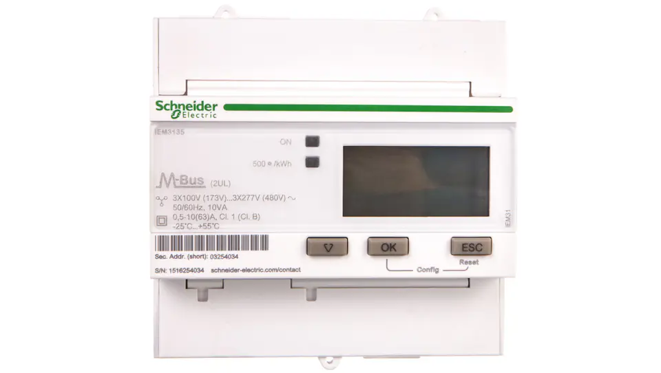 Licznik energii elektrycznej 1/3-fazowy 63A 100-277/173-480V kl.1/B M-Bus MID taryfowy cyfrowy modułowy iEM3135 A9MEM3135