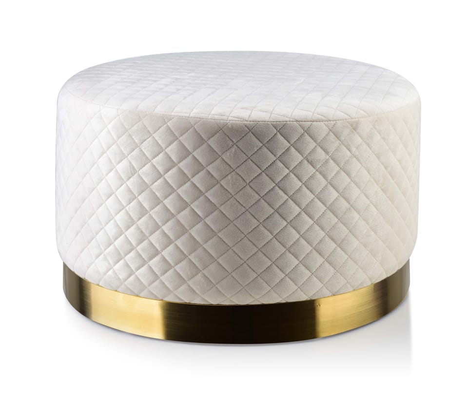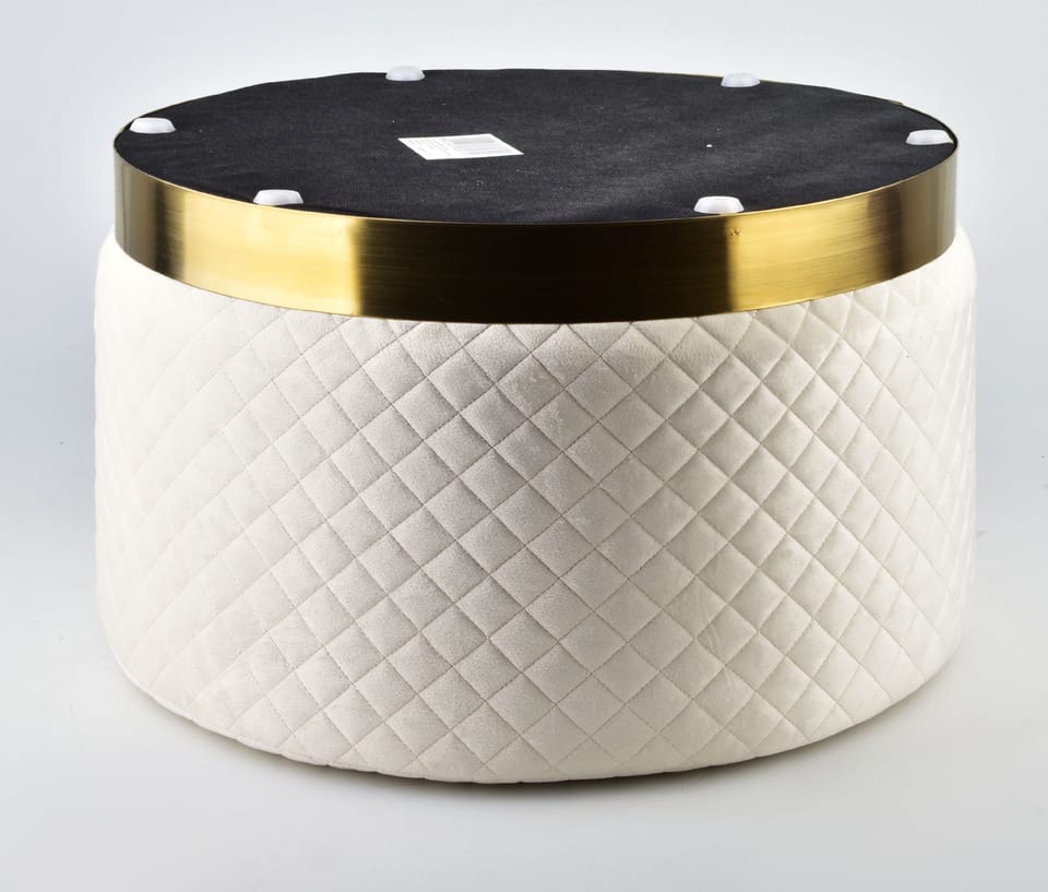 Przepiękny pikowany puf z serii LILY marki Mondex. Kolor jasno-beżowy z e złotym spodem prezentuje się idealnie. średnica: 50cm wysokość: 30cmmaz udźwig: 100kg
