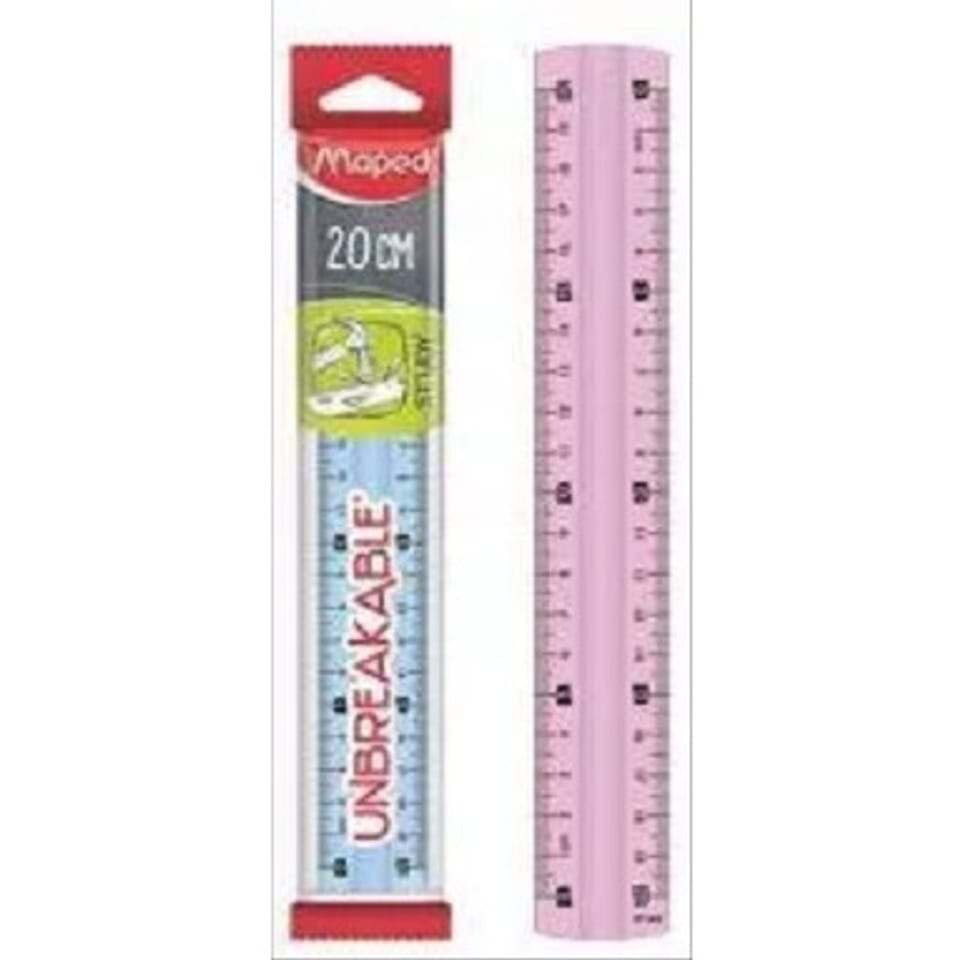 * jednostka sprzedaży: 1 szt. * mocna i w pelni elastyczna * niełamliwa * nieścieralna podziałka odporna na promieniowanie UV * zaokrąglone rogi * dwustronna skala * wyróznione wartości co 5 cm * losowy dobór - transparentne kolory: różowy i błękitny * długość 20cm
