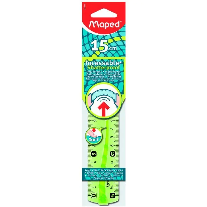 Nowa generacja linijek o bardzo duzej odporności na zlamanie. Efektowny, gumowany element na calej dlugości linijki FLEX zapobiega jej przesuwaniu w czasie pracy i poprawia elestycznośc. Linijki dostepne w dwóch kolorach zielonym i niebieskim. Linijka bez uchwytu. Skala po obu stronach. Dlugośc 15 cm. JS 1 szt
