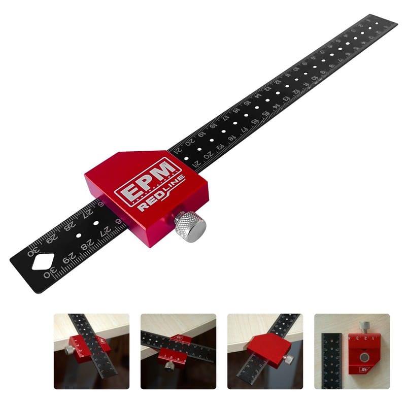 Linijka kątowa z ogranicznikiem RED LINE 30 cm EPM – precyzyjna stalowa kątownica stolarska