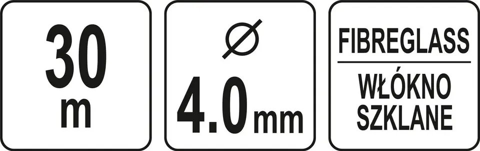 elastyczna linka o długości 30 m i średnicy 4 mm wykonana z włókna szklanego powleczonego trwałym plastikiem