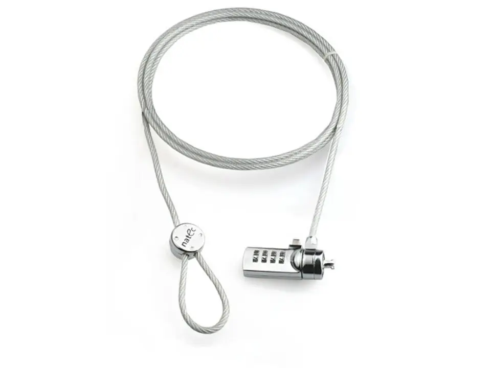 | Cechy: | Kompatybilna z urządzeniami wyposażonymi w slot zabezpieczeń, Utwardzana stal, Pokryta tworzywem sztucznym, Zamek na cztero-cyfrowy kod |