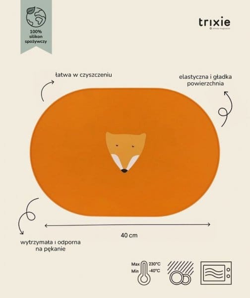 Silikonowa podkładka z wesołym zwierzakiem idealnie nadaje się do posiłków, a także do prac ręcznych i zabaw, które pomogą utrzymać stół i inne powierzchnie w czystości. Podkładka wykonana jest z wytrzymałego, 100% silikonu spożywczego, dzięki czemu z łatwością usuwa się z niej rozlane ciecze i plamy.Cechy: - wyjątkowy design- elastyczna i gładka powierzchnia- odporna na pękanie- łatwa w czyszczeniu Materiał:100% silikon spożywczyZalecany wiek:4 miesiące+Wymiary:40 x 27 x 0.5 cm...