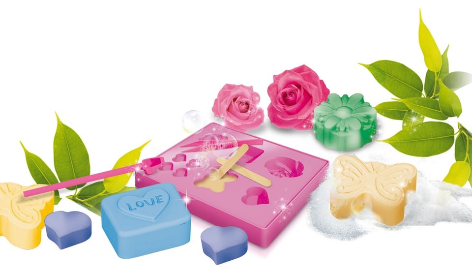 Zestaw do tworzenia pachnących mydełek. Wybierz kształt, wymieszaj składniki, zabarw i nadaj im wybrany zapach! Mydełka to świetny pomysł na prezent dla przyjaciół jak i dla członków rodziny. Zawartość: foremki, gliceryna w płatkach, akcesoria do eksperymentów, aromaty, barwnik spożywczy.