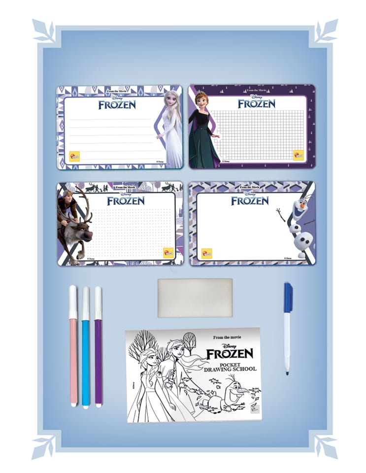Prawdziwie magiczna szkoła rysowania na licencji, która zawiera 4 tablice suchościeralne, marker do pisania po nich oraz jeden zeszyt. Zestaw rozwija ciekawość, kreatywność i wyobraźnię. Podczas zabawy dzieci uczą się pisać, rysują swoich ulubionych bohaterów oraz mają szansę ich pokolorować. Wszystkie aktywności przygotowane są progresywnie, zaczynając od tych najłatwiejszych, aż po najbardziej skomplikowane.