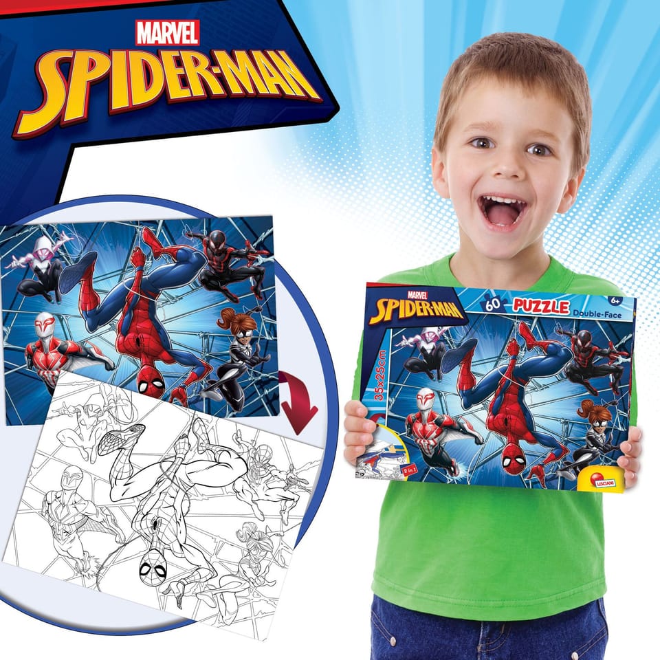 Baw się świetnie odtwarzając najlepsze sceny z kreskówki SPIDERMAN! Układaj dwustronne puzzle, tworząc piękny obrazek lub koloruj jego czarno-biały odpowiednik, starając się odtworzyć kolory z kreskówki lub nadając całej scence nowego charakteru. Produkt zawiera 60 elementów.
