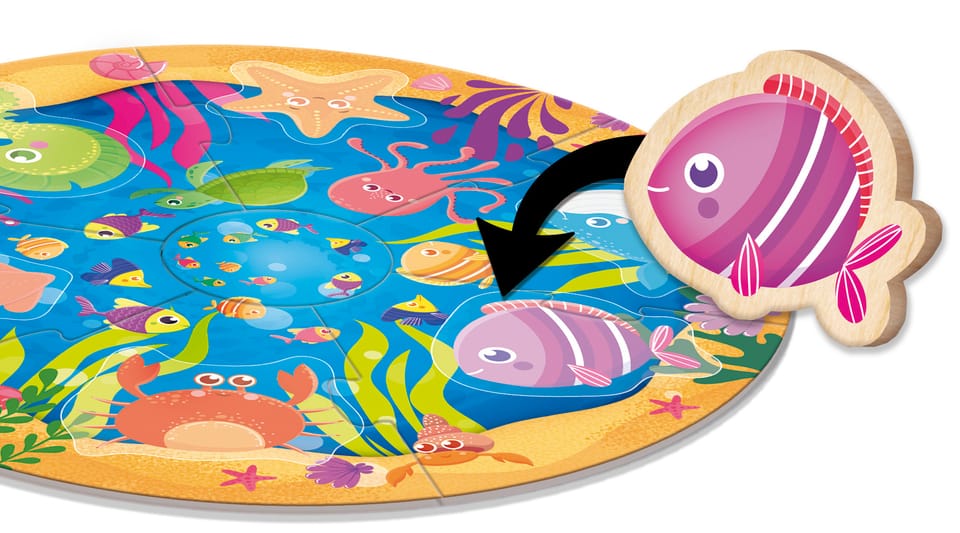 Ekscytująca okrągła łamigłówka do ćwiczenia dotyku i logiki w duchu metody edukacyjnej opracowanej przez włoską pedagożkę, Marię Montessori.