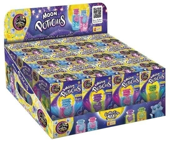 Wkrocz do Księżycowej Akademii i dołącz do Leandry, Alby i Nycty, najlepszych uczennic, które wszystkiego Cię nauczą! Dzięki temu zestawowi nauczycie się jak stworzyć własną księżycową miksturę. W opakowaniu znajduje się wszystko, co niezbędne, by ją spersonalizować i wyeksponować w stylu Księżycowej Akademii.Zawartość: Buteleczka, korek, pigment, ekologiczny brokat, klej, sznurek, etykieta, podstawka na miksturę, światełka zasilane bateriami, ilustrowana instrukcja.