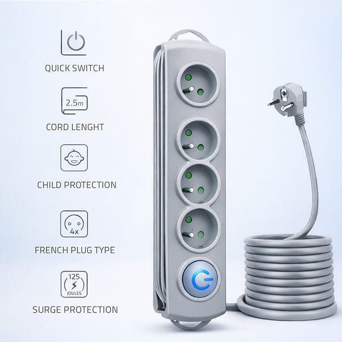 Listwa antyprzepięciowa | Quick Switch | 4 gniazda | 2,5m | szara