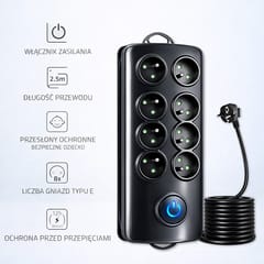 Listwa antyprzepięciowa Quick Switch, 8 gniazd, 2,5m