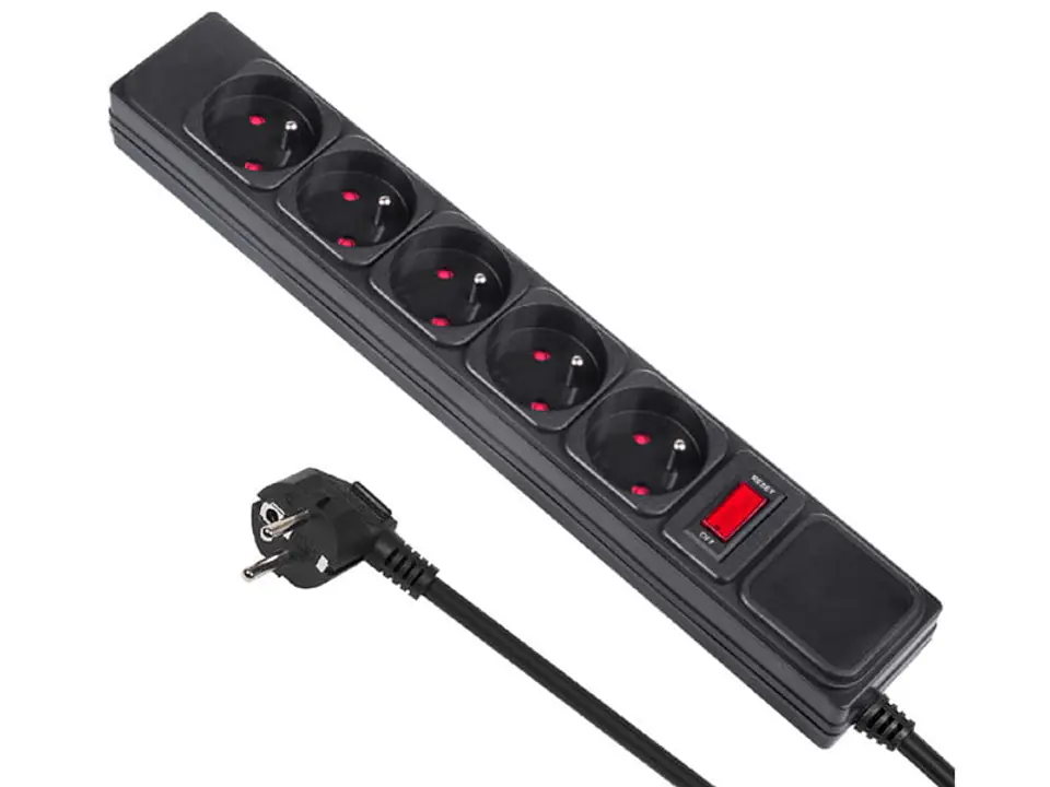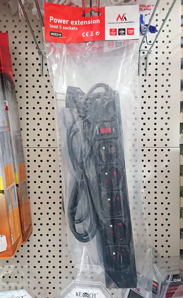 - Listwa zasilająca przedłużacz 5 gniazd z włącznikiem przeciwprzeciążeniowym Maclean Energy MCE219 250VAC/10A 1,5m
