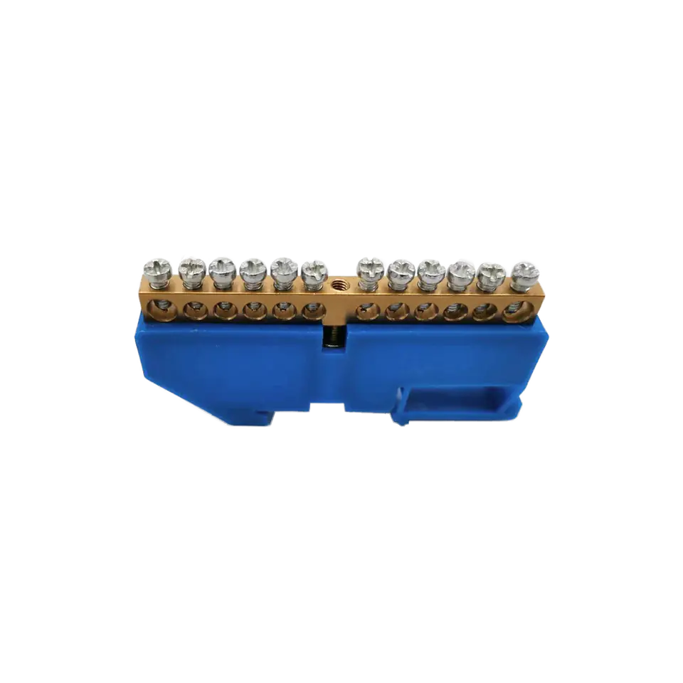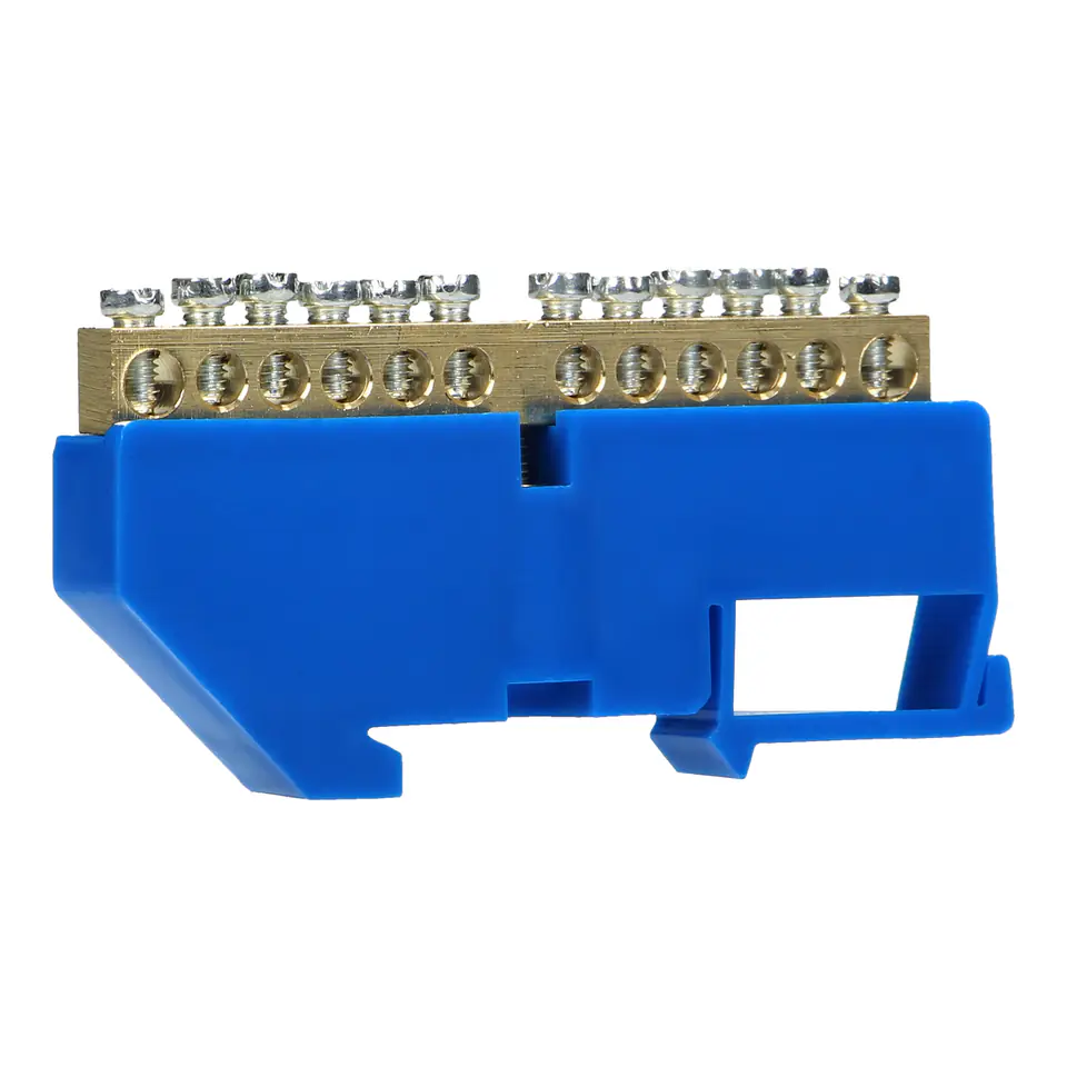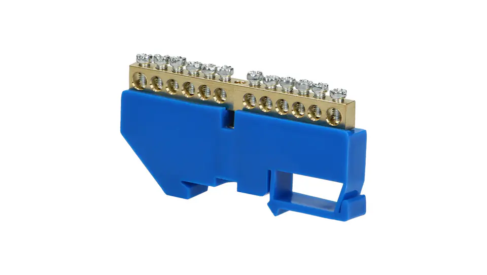 Listwa zaciskowa do przewodu neutralnego (niebieska). Stosowana w rozdzielniach elektrycznych ułatwia rozdział potencjałów i okablowania. Nadaje się do montażu na szynę DIN.