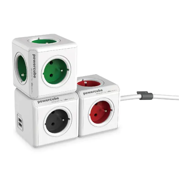 Listwa zasilająca 240V, CEE7 widelec) - POWERCUBE, 0,1 m, ORIGINAL USB, szara, POWERCUBE, 4 gniazdka + 2 porty US