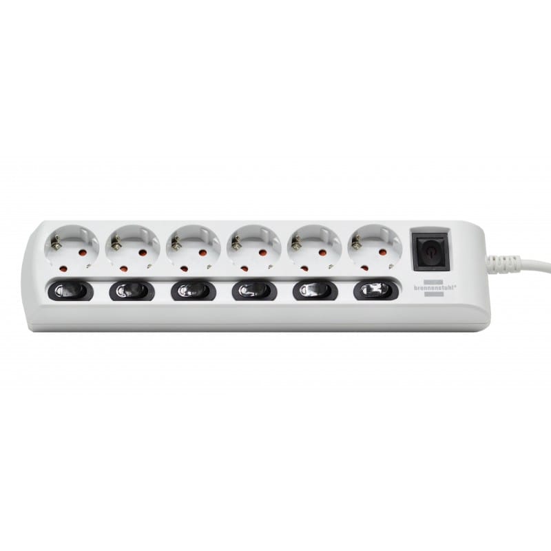 Listwa z indywidualnymi włącznikami/wyłącznikami dla każdego gniazda, wykonana z odpornego na pęknięcia poliwęglanu. Posiada włącznik/wyłącznik główny i 6 włączników/wyłączników, które są podświetlane i dzięki temu umożliwiają szybkie i bezpieczne sterowanie.