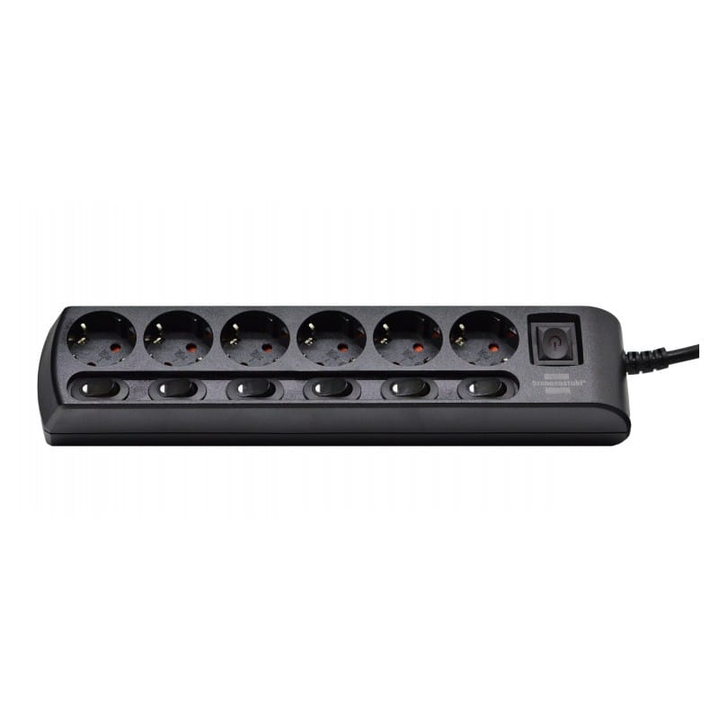 Listwa z indywidualnymi włącznikami/wyłącznikami dla każdego gniazda, wykonana z odpornego na pęknięcia poliwęglanu. Posiada włącznik/wyłącznik główny i 6 włączników/wyłączników, które są podświetlane i dzięki temu umożliwiają szybkie i bezpieczne sterowanie.