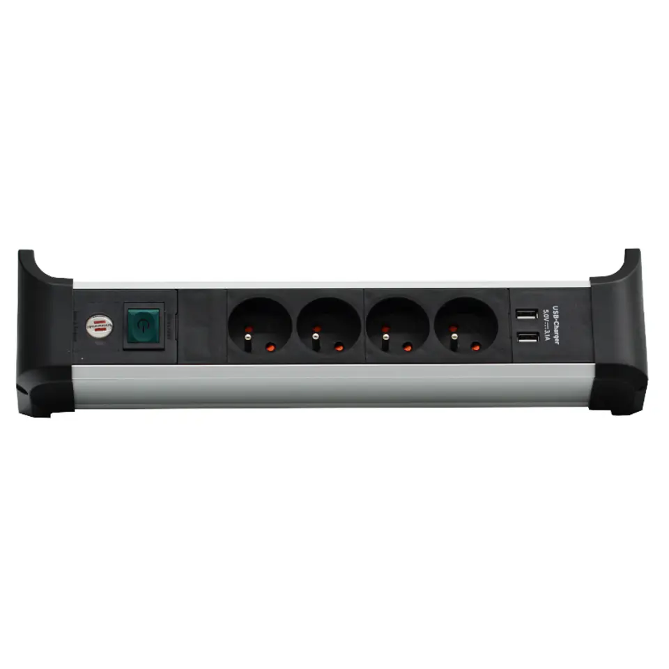 Listwa Premium Alu line wykonana jest z wysokiej jakości odpornego na uszkodzenia aluminium. Bardzo uniwersalne gniazda typu E w układzie 45° pozwalają na podłączenie szerokiej gamy zasilaczy, ładowarek czy wszelakiego sprzętu elektronicznego. Gumowe antypoślizgowe nóżki zapobiegają przemieszczaniu się listwy na biurku, a ruchoma poprzeczka pozwala na podłączenie wtyczki i odprowadzenie przewodu na tył listwy. Dodatkowo gniazda posiadają zabezpieczenie Child protect, dzięki czemu listwa idealnie nadaje się nie tylko do użytku biurowego ale i domowego: