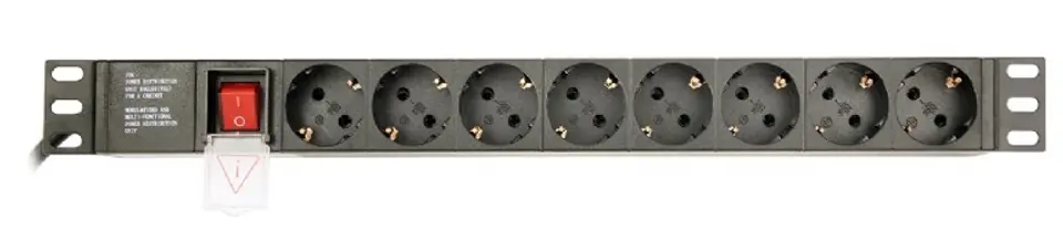 Profesjonalna listwa zasilająca o rozmiarze 1U, Posiada aluminiową obudowę, 8 gniazd typu Schuko i osłonkę chroniącą przed przypadkowym wyłączeniem. Idealna do szaf serwerowych.
