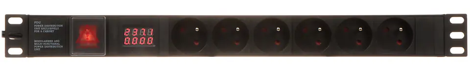 Listwa zasilająca umożliwia podłączenie do 6 urządzeń jednocześnie, przy maksymalnym łącznym obciążeniu 3680 WUrządzenie montowane jest do szafy RACK 19"