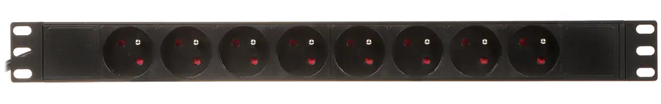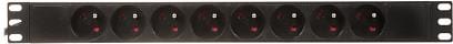 Listwa zasilająca umożliwia podłączenie do 8 urządzeń jednocześnie, przy maksymalnym łącznym obciążeniu 2500 WUrządzenie montowane jest do szafy RACK 19"