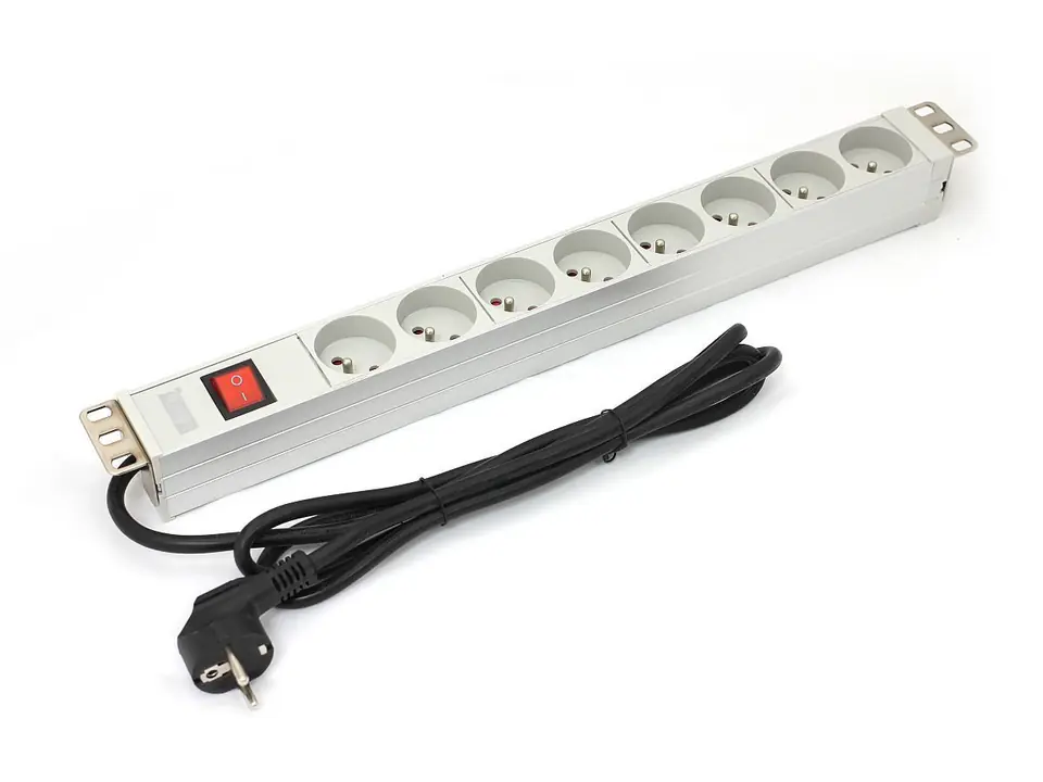 Listwa zasilająca PDU 19" RACK 8xTyp E, kabel 1.8m z wtyk Schuko, wł./wyłącznik, aluminiowa