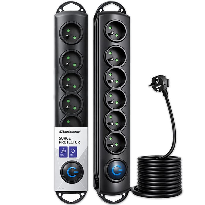 Listwa antyprzepięciowa marki Qoltec posiada gniazda sieciowe z uziemieniem, które umożliwiają podłączenie pełnowymiarowych wtyczek europejskich, kabel oraz organizer na kabel. Elegancki design oraz podświetlany włącznik nożny typu Quick Switch zapewniają komfortowe użytkowanie. Listwa wykonana jest z niepalnego tworzywa, a dzięki zabezpieczeniu przeciw przepięciom, które występują w sieci energetycznej, zapewni ona bezpieczeństwo podłączonych do niej urządzeń. Posiada nie tylko zabezpieczenie przed przepięciami, ale również zabezpieczenie przed dostępem dla dzieci. Listwa antyprzepięciowa przeznaczona jest do użytku zarówno w domu jak i w pracy, ale również do użytku w warsztatach, sklepach oraz w innych miejscach, w których niezbędne jest podłączenie kilku urządzeń jednocześnie. Dodatkową zaletą jest możliwość zamontowania listwy na meblach. Produkt posiada ubezpieczenie. Napięcie znamionowe: 230 V ACPrąd znamionowy: 16 ACzęstotliwość: 50 HzMaksymalne obciążenie: 16A / 230V / 3680WQuick Switch - wyłącznik nożnyMożliwość montażu na meblachOrganizer kablaUbezpieczenieObudowa wykonana z niepalnego PPZabezpieczenie przeciwprzepięcioweZabezpieczenie przed dostępem dla dzieciSpełnia wymogi Zarządzenia EU 2002/96/EC