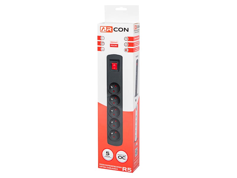 Produkt posiada specjalny system do ochrony przeciwzwarciowej i przeciwprzepięciowej. Zastosowany bezpiecznik automatyczny o działaniu zwłocznym, który nie wymaga wymiany jest doskonałą ochroną. Dodatkowo listwa posiada wbudowane przesłony ochronne gniazd sieciowych.Wysokiej klasy warystor o szybkim czasie działania poniżej 25 nanosekund i wysokiej wartości pochłanianego impulsu 6000A, chroni urządzenie przed niebezpiecznymi skokami napięcia. R5 nie zajmuje dużo miejsca i w połączeniu z możliwością montażu do podłoża, jest produktem uniwersalnym o szerokim wachlarzu zastosowania. Zabezpiecza przed zwarciami, jak i niebezpiecznymi skokami napięcia urządzenia elektroniczne w domu i w biurze.5 gniazd z uziemieniemszybki bezpiecznik automatycznysystem przeciwprzepięciowyprzesłony ochronne gniazd sieciowych