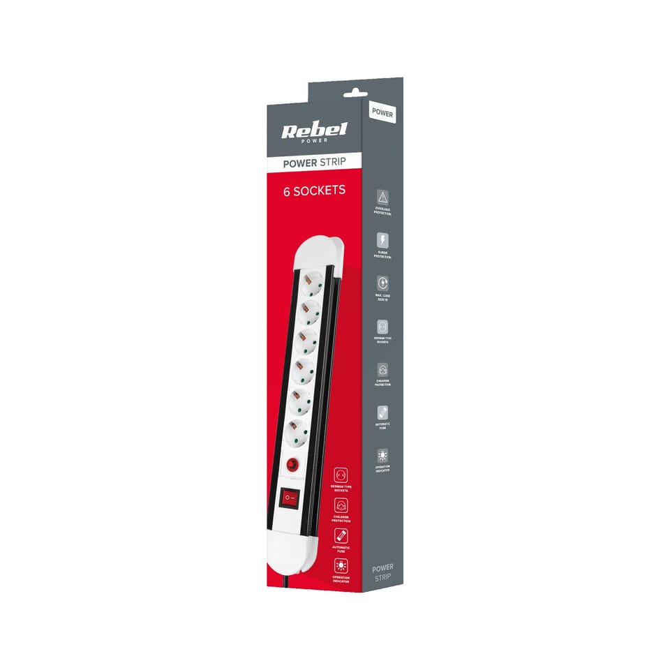 Listwa zasilająca Rebel German type - 6 gniazd, 1,5m 1,5 mm