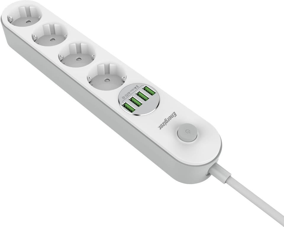 - Wszechstronność zasilania: Listwa zasilająca Energizer oferuje cztery standardowe gniazda oraz cztery porty USB-A, umożliwiając jednoczesne zasilanie ośmiu urządzeń.