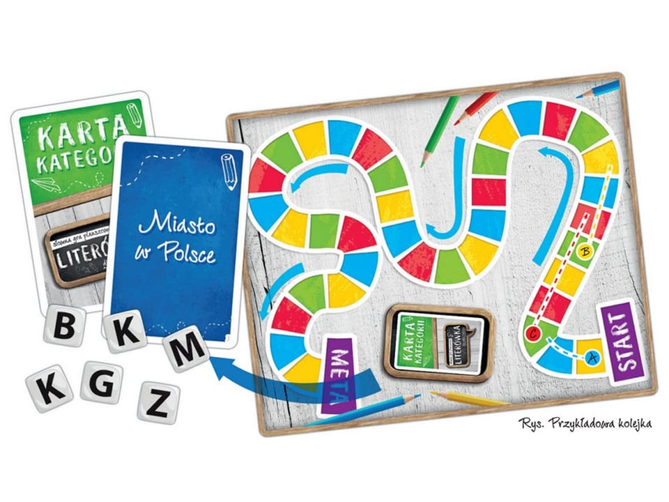 "LITERÓWKA" słowna gra planszowa. Oto gra, w której możecie się zmierzyć z rywalami na wiedzę! To czas, żeby sprawdzić, kto wie więcej o świecie i jest niezłym bystrzakiem. Rzucaj kostkami, losuj litery obowiązujące w tej kolejce i odpowiadaj na pytania z danej kategorii. Jeśli chcesz zdobywać punkty, musisz wymyślać słowa, na które nikt inny nie wpadnie. Będzie ubaw! Zestaw zawiera: plansza- 1 szt, karty z kategoriami - 55szt, kostki z literami - 6 szt, pionki - 6 szt, notes - 1 szt, klepsydra - 1 szt, instrukcja. Wymiary pudełka w cm: 24,5/20,5/5