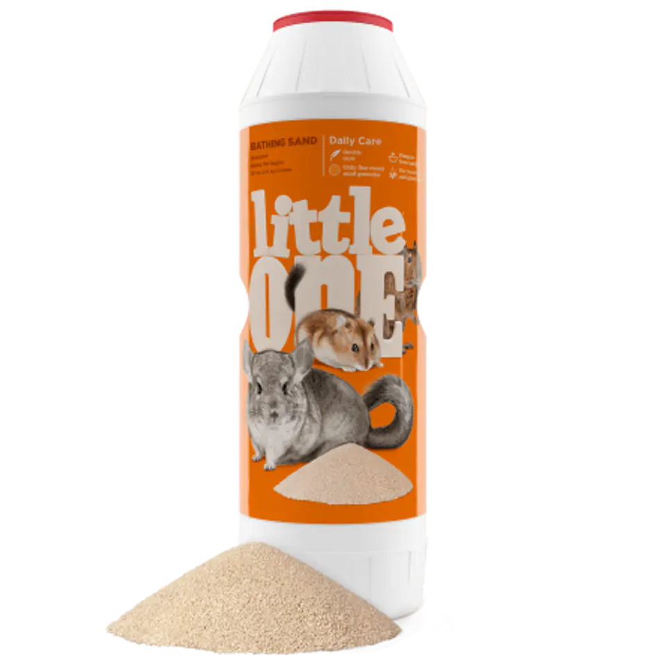 Piasek do kąpieli Little One to idealny, higieniczny sposób na pielęgnację sierści Twojego pupila. Miękkie, gładkie granulki piasku zapewniają szynszylom i innym ozdobnym zwierzętom domowym dokładne oczyszczenie i usunięcie skroplonej wody i oleju. Piasek Little One nie rysuje sierści i łatwo się go otrząsa, dzięki czemu sierść Twojego pupila wygląda luksusowo i lśniąco.
