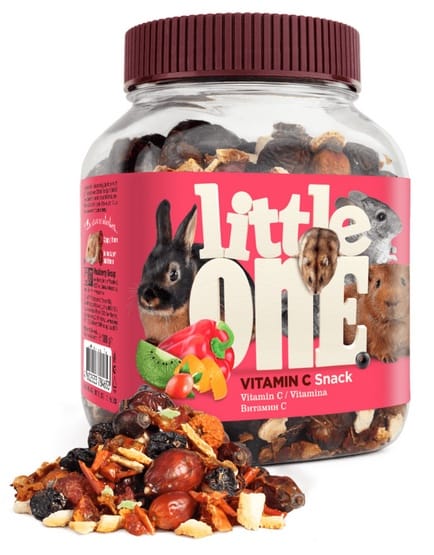 Świnki morskie, szynszyle i inne zwierzęta domowe mają szczególne zapotrzebowanie na witaminę C. Świnki morskie nie są w stanie samodzielnie syntetyzować tej witaminy, więc muszą dostarczać jej odpowiednią ilość z pożywienia. Little One Vitamina C to mieszanka jagód, owoców i warzyw z maksymalną zawartością witaminy C.Instrukcje dotyczące karmienia: