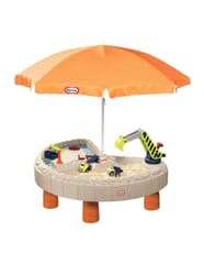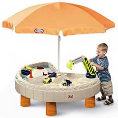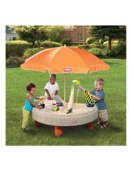 - -w zestawie znajduje się parasol, który osłoni maluchy przed ostrym słońcem i dwa autka budowlane do wspaniałej zabawy
