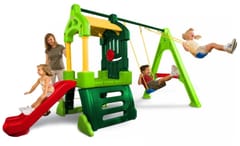 W zestawie 2 huśtawki oraz zjeżdżalnia. zjeżdżalnię o długości ślizgu 116 cm. Środkowa część posiada zadaszoną przestrzeń do której można dostać się po ściance do wspinania, bądź po drabince z liny.