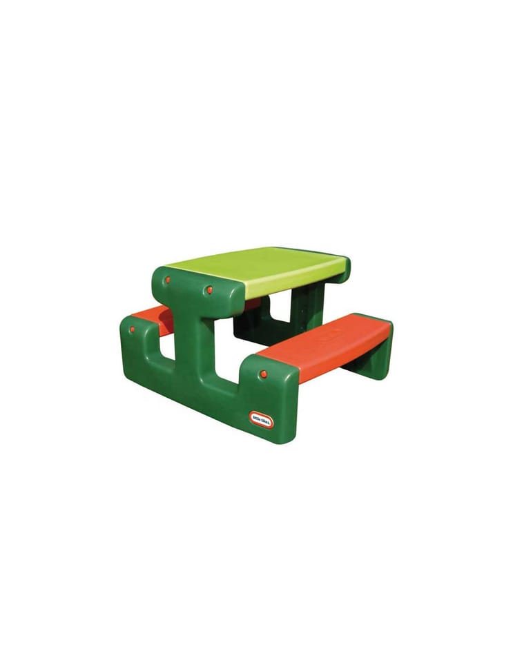 Stolik piknikowy dla dzieci w kolorze zielono czerwonym od renomowanej marki Little Tikes, cenionego producenta zabawek dla dzieci. Stół będzie idealny do zabawy zarówno w domu jak i w ogrodzie. Jednoczęściowy stolik został wyposażony w wygodne czerwone siedziska oraz zaokrąglone i gładkie krawędzie dla zapewnienia bezpieczeństwa. Stolik może stać się warsztatem pracy dla dzieci, odpowiedni do wykonywania wszelkich zadań, np. lepienia, malowania, wycinania, jedzenia itp. Przy stole może jednocześnie przebywać czworo dzieci.