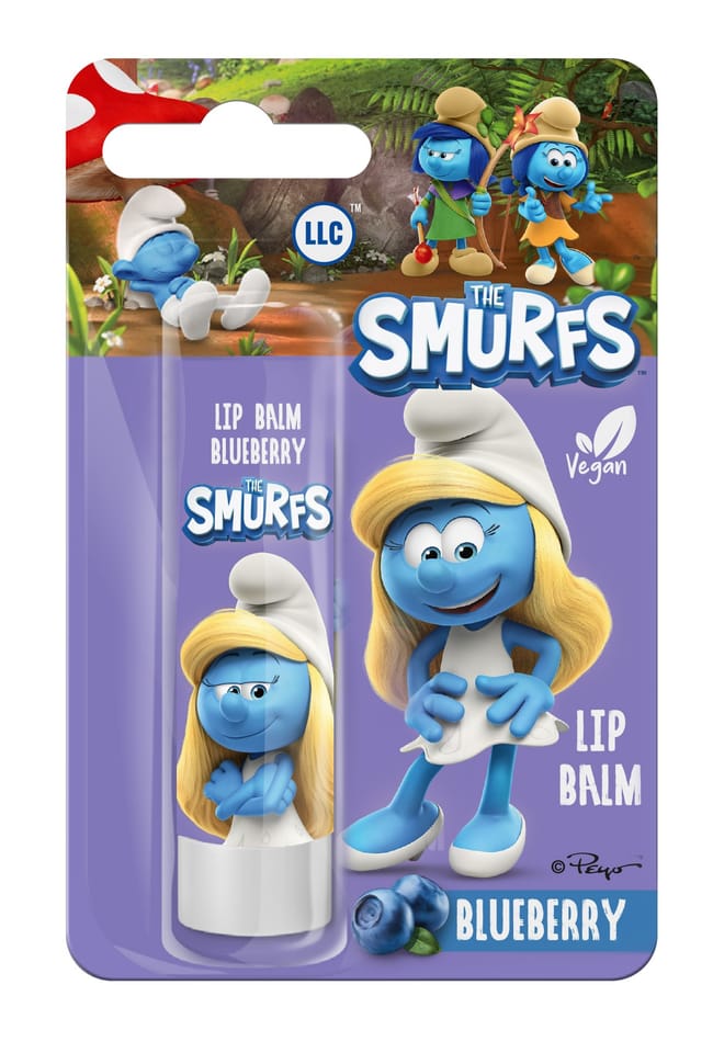 Pomadka ochronna Smerfy Blueberry Lipbalm z masłem shea, wzbogaconym witaminami A, E i F, doskonale nadaje się do codziennej pielęgnacji ust.