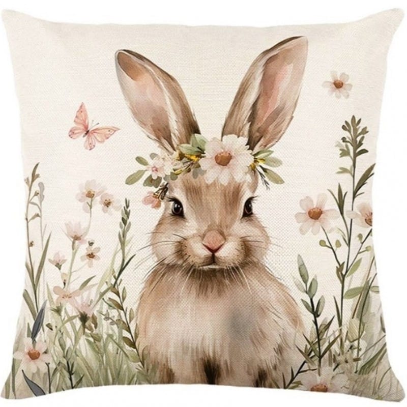 Lniana poszewka na poduszkę 45 x 45 cm z motywem wiosennym KRÓLICZEK POD213