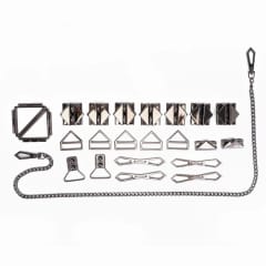 Zestaw zawiera opaskę na oczy, różne rodzaje pasków, na przykład do kajdanek lub kajdanek na kostki, knebel kulkowy i wiele więcej!