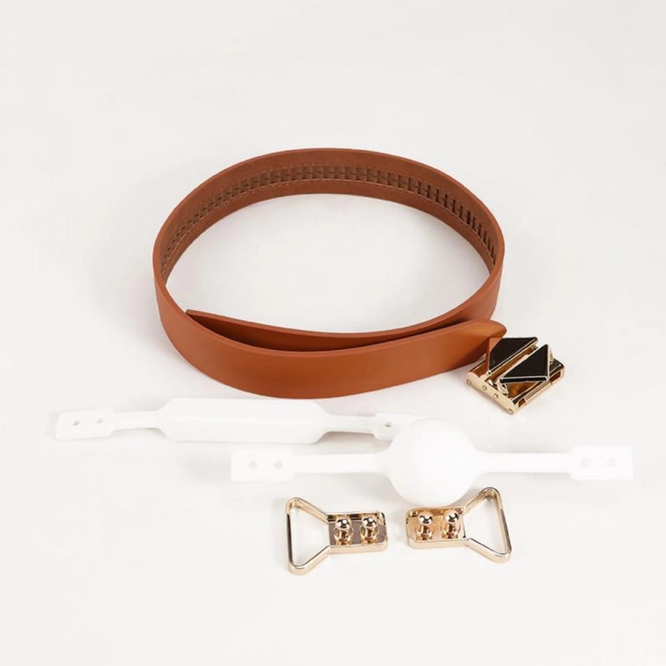 W rzeczywistości z tym zestawem możesz wybierać między kneblem kulkowym a kneblem-gryzakiem. Możesz również wyregulować pasek, aby zawsze był odpowiednio dopasowany.